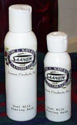 Ingredients: water, witch hazel, goatmilk, vitamin E, sesame oil, grape seed ext., comfrey sage and geranium oil.