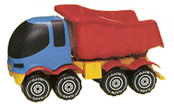 Colorful, heavy-duty truck with tipping bed. Length 400 mm/16".