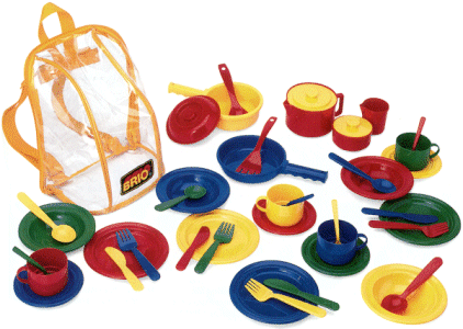 Special 42 piece set contains everything needed to cook and serve four hungry friends. Packed in a take-along backpack.