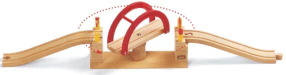 Middle section rotates 360�. Includes lifting crossing barriers and 2 x ascending tracks. Length 648 mm/25.5".